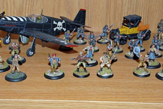 Adversaries for my Pulp games. These will be creatures like mummies and dinosaurs and the like and perhaps a few villians as well. Right now i have about 6 generic savages, 9 mummies, 9 wolves, 5 wearwolves, 8-10 cultist, 10 frog men, 10-20 lost world skinks, and about 10 other beast and creatures. I'd also like to add a few dinos but I'm not sure yet which ones. I'm not setting a date on this other than the end of the year.