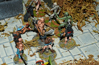 We are about to kick off another leg of our Savage Hyboria Forgotten Islands campaign.  Most of the party have reached the "Seasoned" level in the Savage Worlds rules system and they also just looted the tomb of an ancient undead sorcerer so I decided it was time for an upgrade of their miniatures to more accurately reflect their new gear.