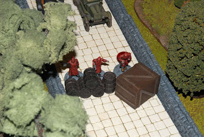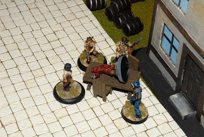 Having taken out the cultist on the far side of the town square agent Bellows turns his attention to the group guarding the trucks. Though he is quite a good shot the cultist have excellent cover and prove hard to hit.