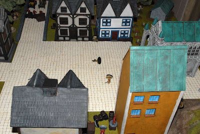 Muzzle blast and magical fire bolts continue to flash across the town square. Another townsfolk is taken out by a blast of arcane fire.