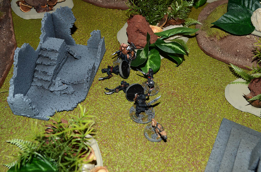 Certain that the slavers would return within the day Heimdall began digging pit traps around the ruins. The women sharpened wooden spikes for the traps coating them with rat dung from the rats nest in the tower as a kind of impromptu poison. Heimdall also made four crude javelins. Having made the best preparations they could each of them took up hiding positions and waited.