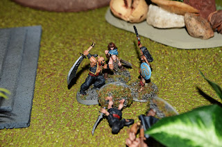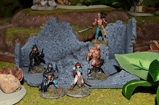 Just thought I would add a shot of my next group of Hyborian Adventurers. These are all Reaper minis. The three in the back are from the Bones line. The photo isn't as nice as I like because I just hand held the shots and used direct flash. No time to set up my lighting this afternoon.